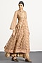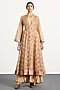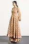 Ri Ritu Kumar features a mesmerizing Beige & Pink Kurta Set that captivates with its elegance. The eye-catching kurta is crafted in silk organza with kalamkari print, zardosi, aari, tikki and mukaish embroidery. It is paired with a skirt. Accentuate the designer kurta set with a low bun, kundan polki jewellery and block heels for a regal look. Perfect wear for daytime functions, festive gatherings or pooja ceremony.