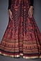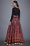Featuring a black and burgundy blouse in poly dupion base with kashida tikki hand embroidery. It is paired with a matching printed lehenga and stole.