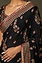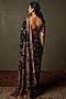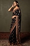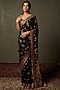 Featuring a black and multi-colored saree in silk chinon base with floral and aari embroidery. It is paired with a matching unstitched blouse.