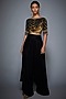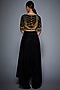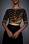 Featuring a black crop top in rayon crepe base with print and zardosi hand embroidery. It is paired with matching pants.
