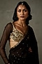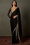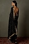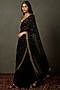Featuring a black saree in silk base with sweetheart neck, zardosi and mukaish embroidery. It is paired with a matching blouse.
