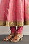 Ri Ritu Kumar presents a bubblegum pink anarkali in chanderi silk base. It is paired with cotton lycra churidar pants and a viscose chinon dupatta. Accentuate it with dangler earrings and heels for a festive occasion or a pre-wedding ceremony.