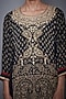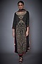 Featuring a charcoal black kurta in rayon and crepe base with zardosi hand embroidery and print. It is paired with matching churidar pants and a dupatta.