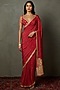 Cranberry Pink Silk Chinon Printed & Embroidered Saree Set