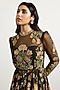 Ri Ritu Kumar features a mesmerizing Dark Olive & Beige Dress that captivates with its elegance. The eye-catching piece is crafted in velvet, silk and satin with print, gota, zardosi, tikki, beads, thread, hand and machine embroidery. Accentuate the designer dress with soft curls, statement earrings, embellished heels and a clutch for an elegant look. Perfect wear for daytime functions or mehendi ceremony.