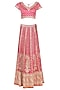 Featuring a fuchsia and orange lehenga in satin base with zardosi hand embroidery. It is paired with a matching blouse and dupatta.
