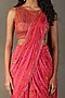 Ri Ritu Kumar features a mesmerizing Fuchsia Pant Saree Set that captivates with its elegance. The eye-catching pant saree is crafted in viscose chinon with tropical floral print and aari tikki hand embroidery. It is paired with a silk chinon blouse. Accentuate this designer pant saree set with dangler earrings and heels for a sangeet ceremony or cocktail party.