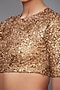 Featuring a golden blouse in viscose base with machine and hand embroidery. This contains only one piece.
