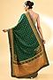 Green Silk Satin Printed & Embroidered Banarasi Woven Saree Set