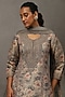 Ri Ritu Kumar presents a grey kurta in polyester silk base with hand and machine embroidery, including floral print. It is paired with silk skirt and a polyester dupatta. Accentuate it with statement jewellery and heels for festive occasions or weddings.