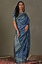 Indigo Blue Murshidabad Silk Floral Printed & Kantha Embroidered Saree Set