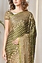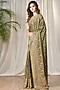 Featuring a khaki green saree in silk satin base with paisley zardosi hand and machine embroidery. It is paired with an unstitched blouse fabric.Style this saree with statement earrings and heels for engagement, sangeet, or pre-wedding ceremonies.