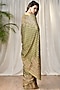 Khaki Green Silk Satin Paisley Hand & Machine Embroidered Saree Set