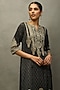 Ri Ritu Kumar presents a khaki and green kurta in silk satin base with kashida hand embroidery and print. It is paired with palazzo pants and a dupatta. Accentuate it with statement jewellery and heels for festive occasions or weddings.