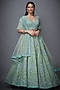 Featuring a mint green lehenga in chanderi silk base with floral hand and machine embroidery. It is paired with a matching blouse and dupatta.
