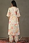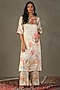 Ri Ritu Kumar presents a mint green and multi-colored kurta in silk satin base with hand and machine embroidery, including floral print. It is paired with pants. Accentuate it with statement jewellery and heels for festive occasions.