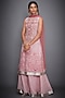 Featuring an off white and coral kurta in viscose chinon base with hand and machine embroidery including print. It is paired with matching palazzo pants and a dupatta.