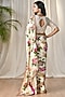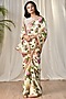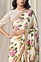 Off White & Pink Rayon Crepe Floral Embroidered Saree Set