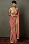 Old Rose Silk Chinon Hand Embroidered Saree Set