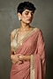 Ri Ritu Kumar features an old rose saree in silk chinon base with bandhani print, machine and hand embroidery. It comes with an unstitched blouse piece. Accentuate this saree with ethnic dangler earrings and heels for festive occasions.