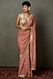 Featuring an old rose bandhani saree in silk base with machine and hand embroidery. It is paired with a blouse. Accentuate it with statement jewellery and heels for weddings or festive occasions.