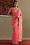 Pink Silk Chinon Aaari Embroidered & Floral Printed Saree Set