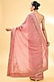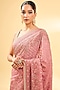 Featuring a pink saree in silk chinon base with aari embroidery and paisley print. It is paired with an unstitched blouse. Accentuate it with statement jewellery and heels for a wedding or sangeet ceremony.