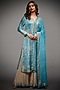 Ri Ritu Kumar features a powder blue kurta in silk satin base with paisley print and aari hand embroidery. It is paired with tissue gharara pants and a silk chinon dupatta. Accentuate this gharara set with stud earrings and block heels for festive occasions.