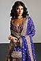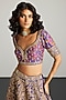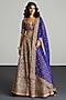 Ri Ritu Kumar presents a purple and gold lehenga in silk dupion base. It is paired with a blouse, a potli and a silk organza dupatta. Accentuate it with dangler earrings and heels for weddings or sangeet ceremonies.