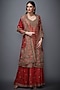 Featuring a red and green kurta in satin and silk base with zardosi embroidery. It is paired with matching palazzo pants and a dupatta.