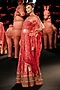 Ri Ritu Kumar features a mesmerizing Red Lehenga Set that captivates with its elegance. The eye-catching lehenga is crafted in silk dupion with floral print and zardosi embroidery. It is paired with a silk embroidered blouse and a polyester net embroidered dupatta. Accentuate the designer lehenga set with a sleek bun, kundan polki or gold jewellery, embellished heels and a potli bag for a traditional bridal look. Perfect wear for royal weddings, engagement or roka ceremony.