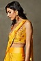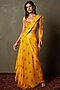 Featuring a saffron draped saree in viscose chiffon base with hand and machine embroidery, including floral print. It is paired with a matching rayon crepe blouse.