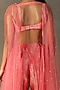 Ri Ritu Kumar features a mesmerizing Shell Pink Gharara Set that captivates with its elegance. The eye-catching sleeveless cape is crafted in polyester with a square neckline, machine and hand embroidery. It is paired with a silk bustier and gharara pants. Accentuate this designer gharara set with statement earrings and heels for a sangeet ceremony or cocktail party.