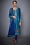 Turquoise & Bottle Green Printed Embroidered Kurta Set