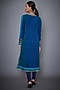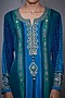 Featuring a turquoise and bottle green kurta in silk chinon base with aari hand embroidery and print. It is paired with matching churidar pants and a dupatta.