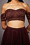 Featuring a wine skirt in viscose nylon and net base. It is paired with a matching blouse and a shash.