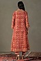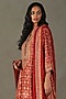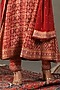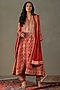 Ri Ritu Kumar features a mesmerizing Wine Kurta Set that captivates with its elegance. The eye-catching kurta is crafted in silk with a V-neckline, three-fourth sleeves, geometric print and aari tikki hand embroidery. It is paired with viscose lycra churidar pants and a viscose dupatta. Accentuate this designer kurta set with dangler earrings and heels for a festive occasion or pooja ceremony.