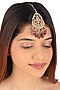 Faesturing a 22 kt gold plated maang tikka studded with pastel pink beads, set in mixed metal. Perfect wear for a wedding or festive occasion.
