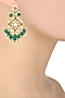 Featuring a pair of gold finish flower motif earrings studded with white jadtar and green stone drops with baby pearl bunches, copper and silver mix.