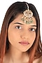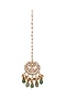Faesturing a 22 kt gold plated maang tikka studded with sea green beads, set in mixed metal. Perfect wear for a wedding or festive occasion.
