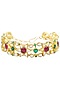 Gold Finish White Jadtar, Pink and Green Bracelet