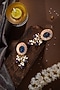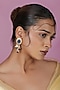 Featuring a 22kt gold plated choker necklace studded with blue jadtar stones and pearls, set in silver and copper mix. It is paired with a matching pair of earrings. Perfect for festive occasions, weddings or cultural events, this jewellery is a wardrobe must for those who love to shine effortlessly.