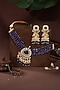 Featuring a 22kt gold plated choker necklace studded with emerald and amethyst jadtar beads, set in silver and copper mix. It is paired with a matching pair of earrings. Perfect for festive occasions, weddings or cultural events, this jewellery is a wardrobe must for those who love to shine effortlessly.