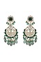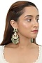 Featuring a pair of 22 Kt gold plated earrings studded with jadtar stone, beads, green moti, and pearls, set in silver and copper.