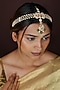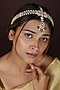Featuring a 22kt gold plated mathapatti studded with green and white jadtar stones, set in silver and copper mix. Style it over loose waves or a classic sleek bun for a regal touch, perfect for weddings, festive functions or cultural celebrations.