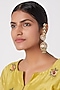 Featuring a pair of 22 Kt gold plated earrings studded with white jadtar stones, white and green bead hangings, set in silver and copper mix metal.