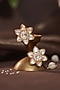Featuring a 22kt gold plated floral choker necklace studded with jadtar stones and pearls, set in silver and copper mix. It is paired with a matching pair of stud earrings. Perfect for festive occasions, weddings or cultural events, this jewellery is a wardrobe must for those who love to shine effortlessly.