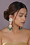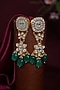 Featuring a pair of 22kt gold plated dangler earrings studded with jadtar white stones and emerald tumble beads, set in silver and copper mix. Perfect for festive occasions, weddings or cultural events, this jewellery is a wardrobe must for those who love to shine effortlessly.