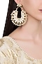 Featuring a pair of gold plated earrings handcrafted with kundan stones and pearl bunch with a green stone in the centre, copper and silver mix.