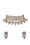 Featuring a 22kt gold plated choker necklace studded with light pink beads, pearl, seep and jadtar stones, set in mixed metal. It is paired with a matching pair of earrings.